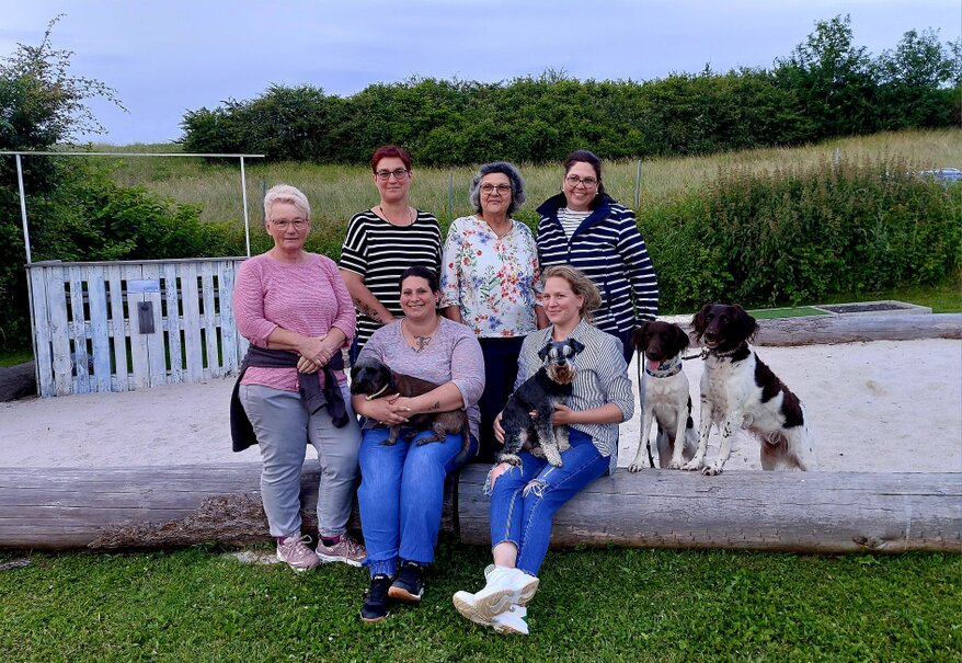 von links nach rechts, hinten: Carina mit Luna, Eva mit Kira, Evelyne, Lisa mit Fine, Jutta mit Emma und Gracy