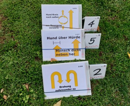 Beim Rally Obedience erwartet euch ein Parcours aus Schildern mit den verschiedensten Übungen der Grundsignale. Diesen könnt ihr zusammen mit eurem Hund meistern. Durch immer neue Zusammenstellungen der Schilder ist kein Parcours wie der Letzte und immer wieder eine neue Herausforderung. Es ist also Konzentration von Hund und Herrchen bzw. Frauchen gefragt.
