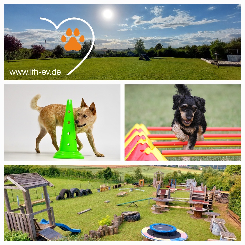 Die Location der Trainingsferien 2026 wird das Übungsgelände der Interessengemeinschaft für Hundeerziehung (IfH e.V.) in Hünfelden-Dauborn sein. Idyllisch in Alleinlage auf einer Anhöhe oberhalb von Dauborn im Goldenen Grund gelegen, ist das Gelände ganz bestimmt der Hundeplatz mit der schönsten Aussicht weit und breit. Große Trainingsflächen und abgeteilte Hundeplätze, Schattenbereiche mit Hecken und Bäumen, Ruhe-Inseln für Mensch und Hund, ein großer Outdoor-Ninjadogsparcours und sogar ein kleiner Hundestrand mit Beachbar erwarten Euch. Über den Maps-Link oben könnt Ihr Euch bereits einen guten Eindruck verschaffen. Direkt angrenzend an das Gelände gibt es sehr gute Möglichkeiten, mit dem Hund entspannt Gassi zu gehen.